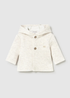 Abrigo manga larga para recién nacido con capucha, ideal para envolver con ternura los primeros días de frío. Cierre frontal central con botones, que facilita ponerlo y quitarlo sin molestias.