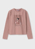 Camiseta de manga larga en color nude para niña, con un moderno estampado en la parte frontal adornado con apliques de lentejuelas, que le aportan un toque de brillo. Su diseño básico y versátil es perfecto para cualquier ocasión, combinando estilo y comodidad.