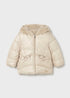 Chaquetón de manga larga para bebé, elaborado con poliéster reciclado, una opción más responsable. Presenta capucha con detalles de pelo y cierre central delantero con cremallera, que facilita la puesta. Su tejido exterior de pelo, suave y gustoso, se combina con un forro interior de poliéster para mayor confort. Incluye apliques de lazos como detalle decorativo y cuenta con un diseño reversible, ofreciendo dos estilos en una sola prenda.