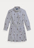 Vestido tipo camisa elaborado en jersey de algodón de alta calidad, presentado en una elegante combinación de azul marino y blanco que aporta frescura y versatilidad al armario infantil. Su diseño incluye el icónico Polo Bear bordado en el pecho, que añade un detalle distintivo de la firma sin restar sofisticación. El cuello tipo polo y la botonadura frontal refuerzan el estilo clásico, mientras la caída limpia define un look cómodo y refinado.