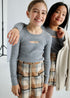 Falda de cuadros color canela para chica. Diseño con cremallera central frontal. Tapas de bolsillo falso.