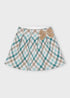 Falda a cuadros color jade con fibras de lurex. El detalle refinado de moño en velvetin en la cintura añade un toque elegante a este diseño chic y moderno. Perfecta para combinar estilo y comodidad en cualquier ocasión.