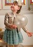 Falda color jade en delicado tul plisado, cintura elástica, diseño moderno y versátil. Prenda must-have de Temporada.