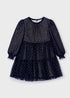 Vestido manga larga en tul brocado con toques brillantes, cierre posterior con cremallera, mangas abullonadas con resorte en puños, forro suave que le proporciona comodidad. Diseño elegante, sofisticado y chic. Perfecto para ocasiones especiales.