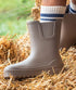 Botas de agua Verona en color taupe, pensadas para acompañar los días lluviosos con estilo, comodidad y funcionalidad. Su diseño liviano y flexible permite libertad de movimiento, mientras que el material resistente al agua mantiene los pies secos incluso bajo lluvia intensa. La suela dentada ofrece tracción segura sobre superficies mojadas, haciéndolas ideales para jugar o caminar con confianza. El interior con forro textil proporciona transpirabilidad y confort, y la plantilla extraíble facilita el cuidado e higiene del calzado. Una opción versátil y práctica que combina estilo atemporal con rendimiento diario.