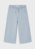 Pantalón color celeste silueta marine para niña. Cintura con banda interna ajustable. cordón y hebillla decorativa en cintura. Diseño chic y versátil. Prenda Must-Have de temporada.