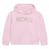 Buzo con capota, manga larga en color rosa para chicas. Elaborado en frech terry con el logotipo KORS en apliques dorados parte frontal. Diseño atemporal y versátil.