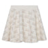 Falda con silueta amplia en A. Cintura elástica. Logotipo MK en taches dorados por toda la prenda. Diseño moderno en tendencia. Must Have de Temporada.