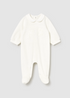 Pijama de manga larga para recién nacido. Cuello bebé y cierre con broches a presión en la parte posterior. Broches a presión en la entrepierna para facilitar la puesta de la prenda. Delicado aplique floral bordado.