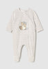 Pijama enteriza de manga larga para recién nacido, con pies incluidos y tierno estampado de osito. Cierre lateral y en la entrepierna con broches a presión para facilitar la puesta. A partir de la talla 12 meses, incluye suela antideslizante. Prenda delicada y suave con la piel del bebé.
