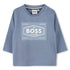 Camiseta de manga larga cuello redondo, Logotipo "BOSS" e ilustración elegante en el frente, broche de cierre en el hombro.