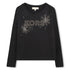 Camiseta de manga larga para chica con el logo KORS y estrellas en la parte frontal, adornados con mini tachuelas metálicas que le dan un toque chic y moderno. Una prenda básica y atemporal, perfecta para cualquier ocasión.