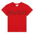 Camiseta roja cuello redondo en canalé, logo con tachuelas en la parte delantera.