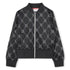 Chaqueta negra estampado monograma integral con trenzas de rayas en las mangas, cierre central de cremallera. Bolsillos ribeteados a los lados. Cuello, puños y cintura elásticos.