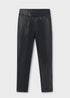 Leggings en polipiel negro para chica, con pretina ancha y corte frontal. Una prenda versátil para cualquier look, perfecta para combinar en diferentes ocasiones.