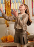 Short en color bronce para niña, confeccionado en polipiel con un elegante acabado. Cuenta con cierre frontal de cremallera y detalles de ribetes falsos que realzan su diseño moderno. Un Must-Have de temporada que añade un toque audaz y actual a cualquier look.