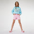 Short sobreteñido en dril de 5 bolsillos, diseño de inspiración occidental a lo largo de los bolsillos, con la marca. Etiqueta de goma en la parte trasera. Terminado desflecado.