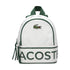 Mochila Lacoste Kids elaborada en poliéster Oxford duradero. Presenta un diseño compacto pero espacioso, con compartimento principal y bolsillo frontal con cremallera, además de un logo gráfico y cocodrilo bordado que aportan carácter distintivo a este accesorio urbano.