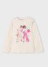 Camiseta esencial de manga larga color crudo con estampado de chicas modernas y apliques de lentejuelas. Diseño versátil que complementa cualquier outfit con un toque chic y moderno.