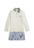 Vestido Polo Ralph Lauren que combina estilo y comodidad en un diseño refinado. Con un favorecedor corte confeccionado en mezcla de materiales, aporta movimiento y ligereza. El modelo presenta cuello alto con cremallera, mangas largas con puños elásticos y delicados pliegues que realzan la silueta. El logotipo bordado en el frente añade el sello distintivo de la marca.