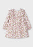 Vestido corte imperio con estampado floral en tonos rosa y detalles de fibras metálicas. Elaborado en material vaporoso con volantes en la pechera que aportan un toque romántico y elegante. Manga larga, abullonadas con elástico en puños. Cierre posterior con cremallera. El diseño perfecto para días especiales.