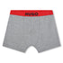 Set por 2 boxer en colores gris y azul para niño. Cintura en jacquard con marquilla tejida y elástico estampado con el Logo.