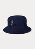 Sombrero tipo bucket reversible ofrece dos estilos en uno: por un lado, color azul náutico con el icónico Polo Bear bordado con un conjunto clásico de Ralph Lauren, y por el otro, en un color amarillo el emblemático Pony bordado al centro.