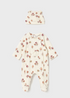 Pijama de manga larga para recién nacida con cierre de broches a presión para vestir con facilidad. Su delicado estampado de honguitos evoca un mágico bosque lleno de encanto. Bolsillo funcional en el centro que suma un detalle adorable. Incluye dulce gorro con suaves orejitas para completar este look tierno y acogedor.