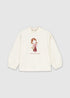 Camiseta de manga larga para bebé con puños elásticos. Cuello semicisne con cierre de broches a presión en la parte posterior. Tierno diseño estampado en serigrafía de muñeca con elemento musical. Suave tejido de algodón elástico.