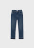 Pantalón para chica de corte ajustado en cadera y rodilla, con bajo acampanado que aporta un toque actual a la silueta. De tiro normal, incorpora cierre de cremallera y botón y goma elástica regulable con botones en el interior de la cinturilla, para un ajuste cómodo y personalizado.