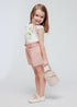 Short color nude para niña. Elaborado en suave crepe, cintura elástica con presillas y botones decorativos. Bolsillos laterales.