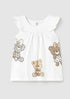 Vestido para recién nacida en silueta A, con volantes en el cuello y tierno estampado de ositos y conejitas. Broches en la espalda para facilitar la postura. Delicado, fresco y adorable para el uso diario.
