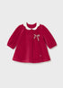 Vestido de manga larga para recién nacida, con puños elásticos que aportan un ajuste cómodo. Cuenta con cierre central trasero con cremallera oculta, facilitando la puesta. Presenta forro interior para mayor confort y un diseño con rizo, que añade volumen y un acabado delicado.