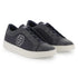 Zapatillas azules elaborados en lona y cuero de origen animal, con un bordado Double B en el lateral y logos impresos en la lengüeta y parte posterior. El cierre con elásticos facilita el calzado, mientras que la plantilla de microfibra es respirable, antibacteriana y muy cómoda.