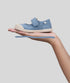 Zapato estilo mercedita, elaborado en lona, en color denim para niña concepto barefoot. Cero drop, flexible, suave y con plantilla extraíble. Cierre adherente y puntera reforzada. Lavar en agua fría no sin antes extraer la plantilla.